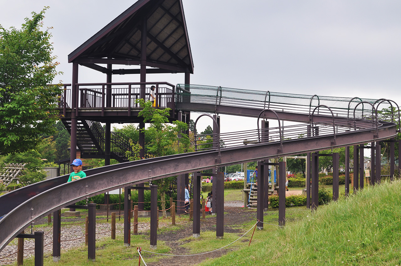 芝生の上でランチを食べたあとは、やっぱり2つのローラーコースター。住宅街というか団地の前にある公園だけど、ターザンロープもあるし小学生なら十分楽しめるから他地方ナンバーの車も多い。
