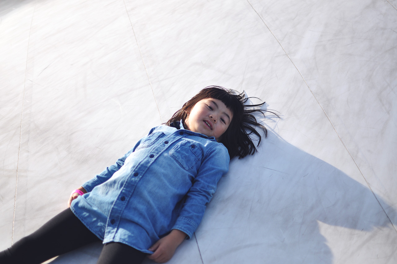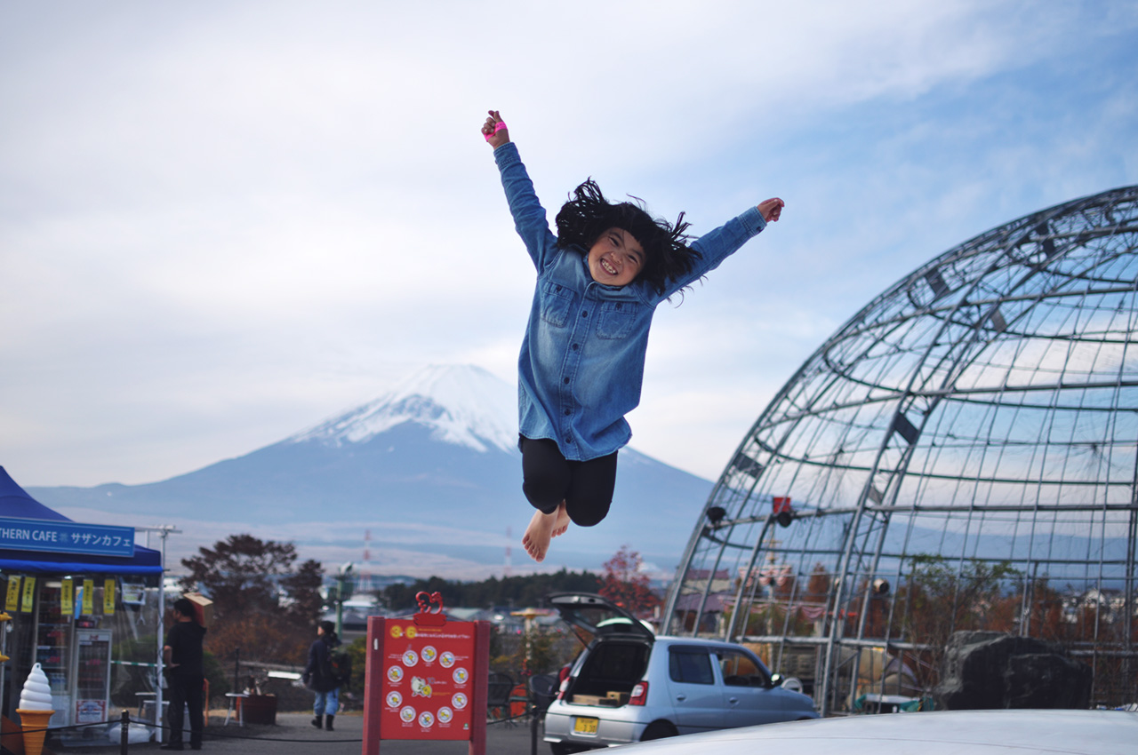 まずは富士山バックに大きなトランポリン!