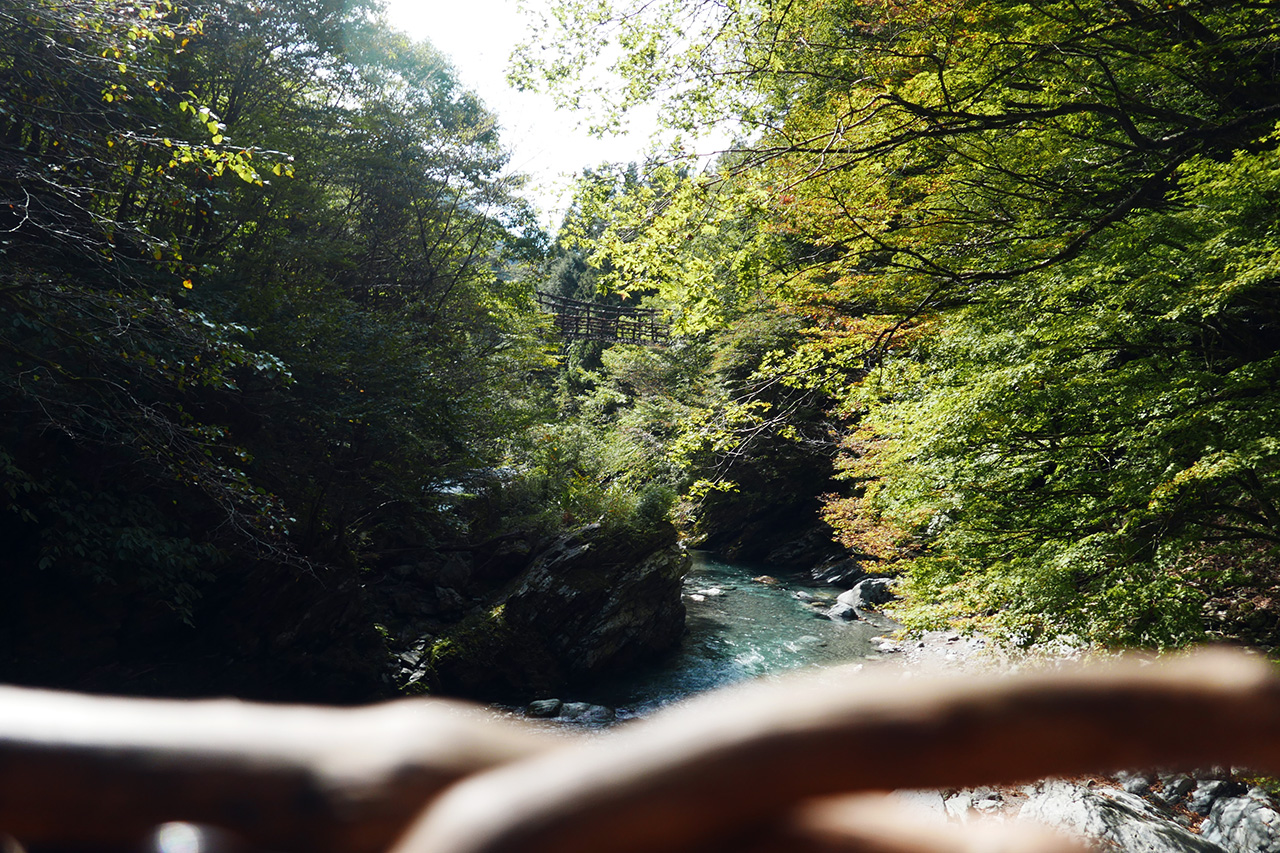 さらに奥に進むと、野猿とよばれる人力で橋を渡る台車。箱版ターザンロープみたいな感じ。デートスポット。ギャラリー(順番待ち)がいるなか、下山後の男一人で乗るのは憚られるため乗らずに眺めるだけ。