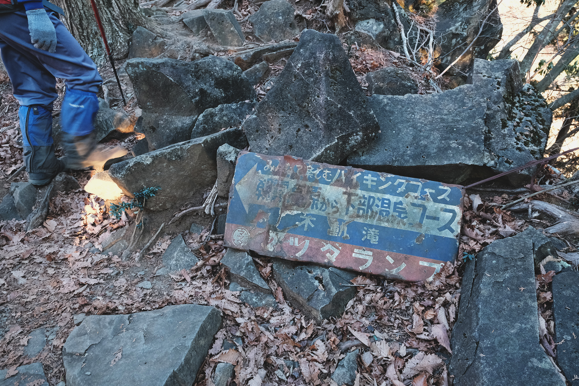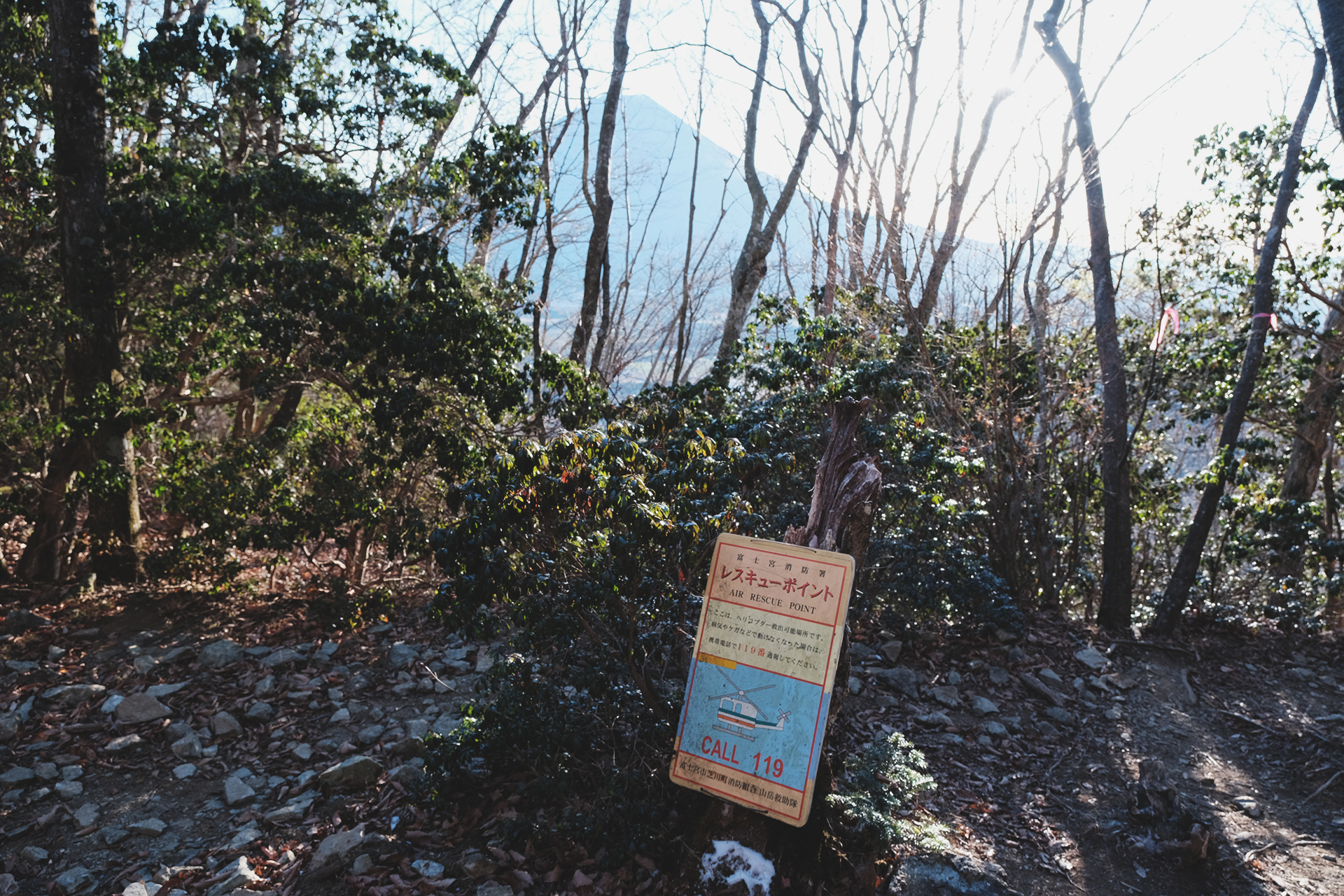 登山口に向かうまでの林道歩きでは、左手にふもとっぱらキャンプ場。12月でもめちゃくちゃ混んでいて、さすがキャンプブーム。自分がよく冬キャンプをしていた数年前は、貸し切りかそれに近い状況が多く、冬季休業しているキャンプ場もかなり多かったのだけど。