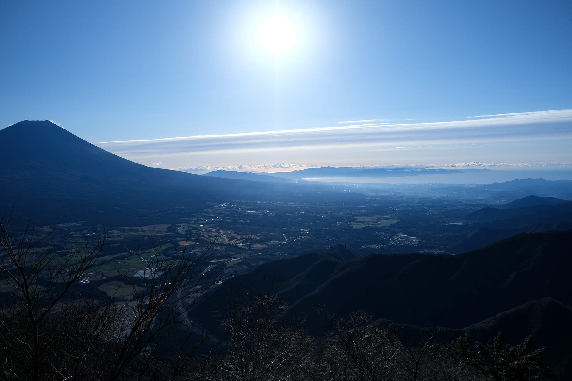快晴で富士山〜駿河湾〜伊豆半島、南アルプスの眺望もバッチリかつ快適なルートで、下山後のご褒美まであり、雪山でなくても冬に楽しめるルートがあることを教えてもらった山歩きだった。